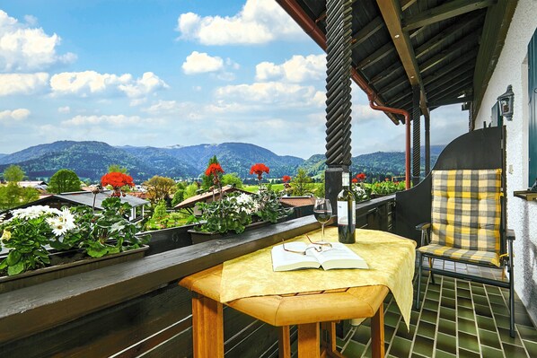 Genießen Sie den traumhaften Blick auf den wilden und den zahmen Kaiser sowie auf Reit im Winkl von Ihrem großen Süd- und Südost-Balkon. Die gemütliche Sitzecke im Wohn-/Essbereich lädt zum Verweilen oder genießen Ihrer Mahlzeiten ein. Hier befindet sich ein Flachbildschirm mit DVD-Player sowie eine Stereoanlage. Die separate kleine Küche ist komplett ausgestattet (Mikrowelle, Kühlschrank mit Gefrierfach, Toaster, Wasserkocher). Das Schlafzimmer ist mit einem Doppelbett (verstellbaren Lattenroste und Bandscheibenmatratzen) und zusätzlich mit 2 gemütlichen Polstersesseln und einem zweiten Fernseher eingerichtet. Bettwäsche und Handtücher werden gestellt. Die Wohnung ist liebevoll eingerichtet und jahreszeitlich dekoriert.