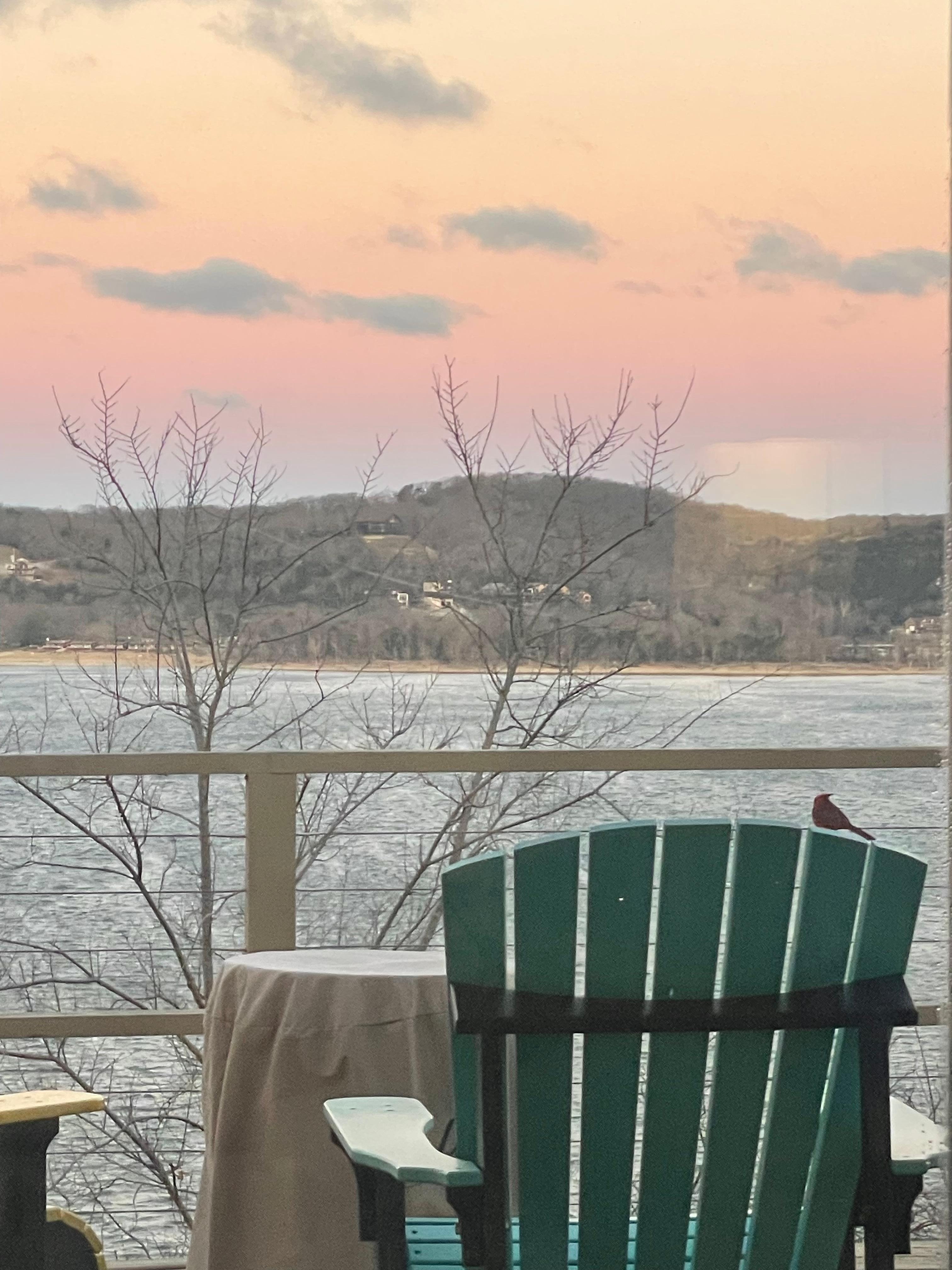 The view is so serene. We were constantly on the porch in the comfy Adirondack chairs looking out over the lake. We saw many types of birds, including a bald eagle that flew right in front of us. We used the fire each night. The picture windows and see-through shades make the view accessible even in bad or too-hot weather. There’s lots to do in the area besides Branson and Big Cedar, if that’s not your scene. Though there were a few spices left by other guests, be prepared to bring your own. The owners were right next door and very responsive to any questions, but you’d never know they were there. Wonderful place to rent, and we would rent again in a second if we return to the area.