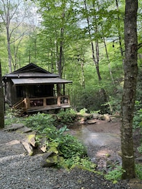 Treehouse Over Creek with WiFi, private hiking trails, firepit & swimming hole