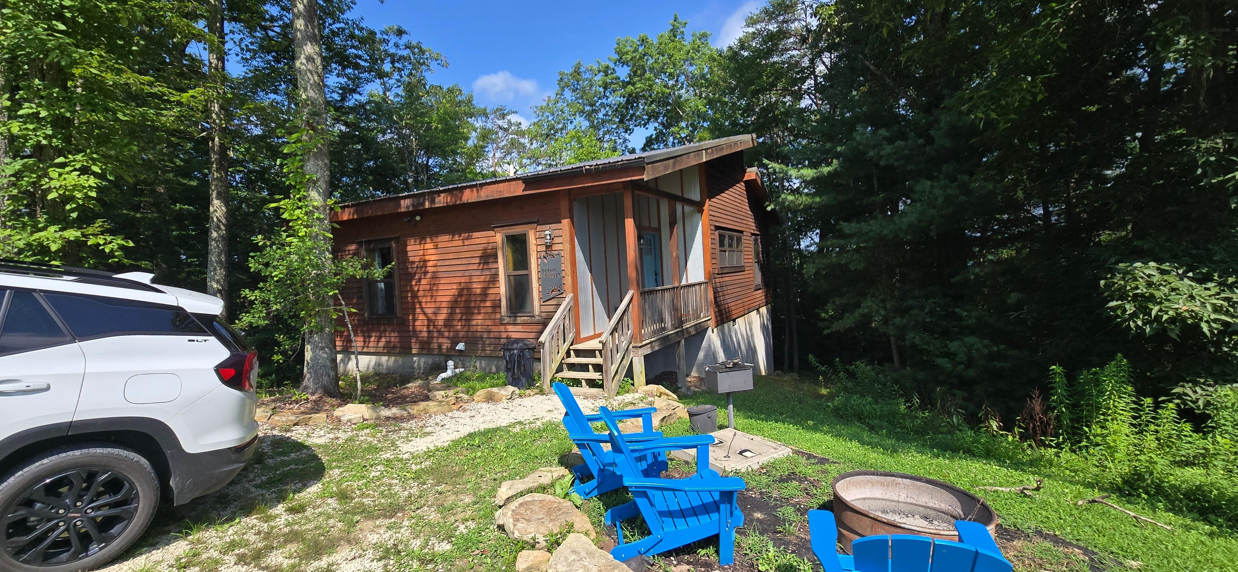 Scenic Sunset is a comfortable, single-level cabin tucked at the end of the Scenic Heights neighborhood, just minutes from the Gorge Underground and other Red River Gorge attractions. With easy access via a well maintained and flat gravel road, this cabin offers a peaceful forest setting without the need for high clearance or four-wheel drive. High ceilings, large windows, and a private outdoor space make it a relaxed home base for couples, families, or small groups.