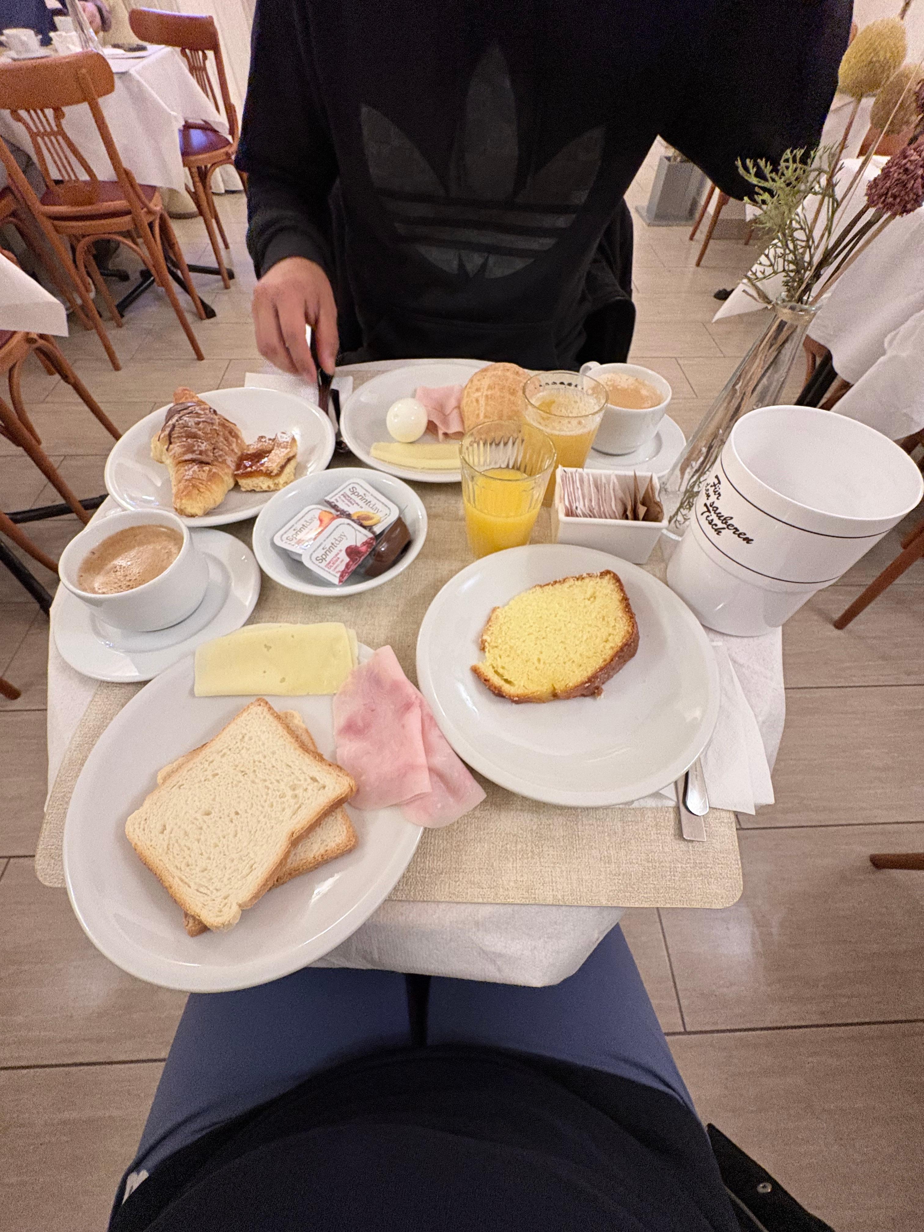 Das Frühstück ist auch sehr zweckmäßig, eine Käse- und eine Schinkensorte, dafür aber viele süße Teilchen. Der Kaffee aus dem Automaten, ist ok.