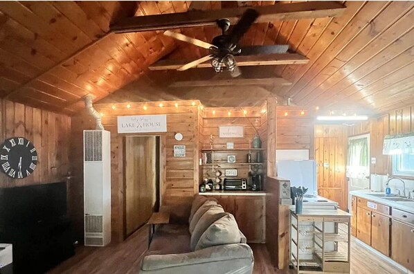 750 sq ft Lakefront vacation home with kitchen, patio, and picnic/ fire pit area