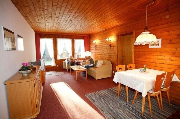 Das Appartement 4 befindet sich im Obergeschoß und ist 30 qm groß. Es verfügt über Wohnschlafzimmer mit einer Doppelbettcouch, einer Kochnische, Bad mit WC/Dusche und Fußbodenheizung, Balkon mit Balkonmöbel, Fernsehgerät, Telefon, und W-Lan. Die Benutzung des Hallenbades mit Freizeitraum ist eingeschlossen.
