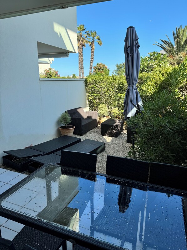 - Hat eine Terrasse und Veranda von 15m2 Terrasse mit Plancha, 1 Tisch, 6 Gartenstühlen, Gartensofa / Sessel, 2 Liegen.