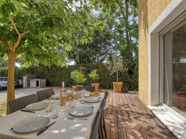 St Cyr Sur Mer: Komfortables Haus "Tauroentum", auf 2 Stockwerken. Im Ortszentrum von Saint Cyr sur Mer, 1.2 km vom Meer, an einer Hauptstrasse, Richtung Süden. Zur Alleinbenutzung: Garten (eingezäunt). Boccia, Terrasse, Grill, Parkplatz auf dem Grundstück. Einkaufsgeschäft 1 km, Einkaufszentrum 1 km, Bushaltestelle "Le Viguier" 350 m, Bahnstation "Saint Cyr les Lecques-La Cadière" 1.2 km, Sandstrand "Les Lecques" 1.2 km. Golfplatz (18 Loch) 3 km, Surfschule 1.2 km. Nahe gelegene Sehenswürdigkeiten: Parcs naturel des Calanques, de Port Cros et Porquerolles, Et Sites Préservés, Parc Aquatique, zoo. Wandergebiete: Massifs de la Sainte Baume et, Sainte Victoire. Bitte beachten: Die Schlüsselübergabe findet bei der Agentur INTERHOME in SAINT CYR SUR MER statt, 3 km. Eisenbahnlinie in der Nähe.
