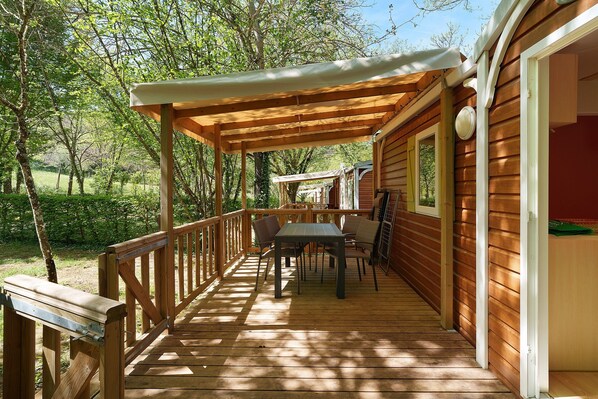 Mobilheim '4 Personen klimatisiert' mit Gemeinschaftspool, WLAN und Klimaanlage