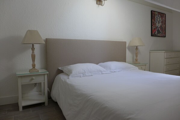 Der Boden besteht aus einem Zwischengeschoss mit einem großen Bett von 160 x 200 cm mit Kommode und Schrank ausgestattet.