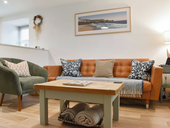 Constructed from the golden sandstone typical of the area, The Hayloft exudes rustic charm. At the rear, two parking bays await alongside a spacious enclosed lawned garden, complete with a picnic table for al fresco dining. Step inside to find the open-plan living area on the ground floor, featuring a well-equipped kitchen, a dining table, and comfortable seating around the TV. Upstairs, you’ll discover a well-appointed double bedroom, a single bedroom, and a family bathroom with a shower over the bath. Ascend to the second floor to find a second double bedroom beneath a beamed vaulted ceiling, complete with an en suite toilet.