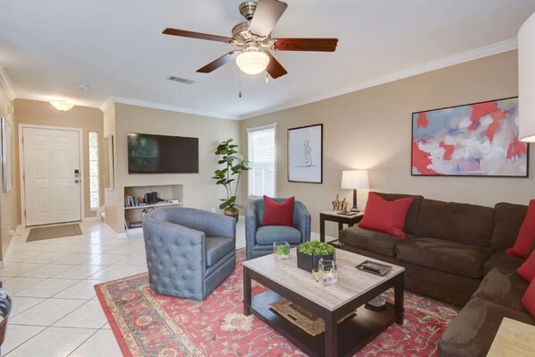 Clean, disinfected, home with open space floor plan, large backyard, BBQ grill with full gas tank. Save money & cook in the fully equipped kitchen (see “amenities” for details), play board games with your family or friends. Great for long weekends, long stays! Relax while on business or going to the doctor, graduations, holidays! New patio sofa & chairs