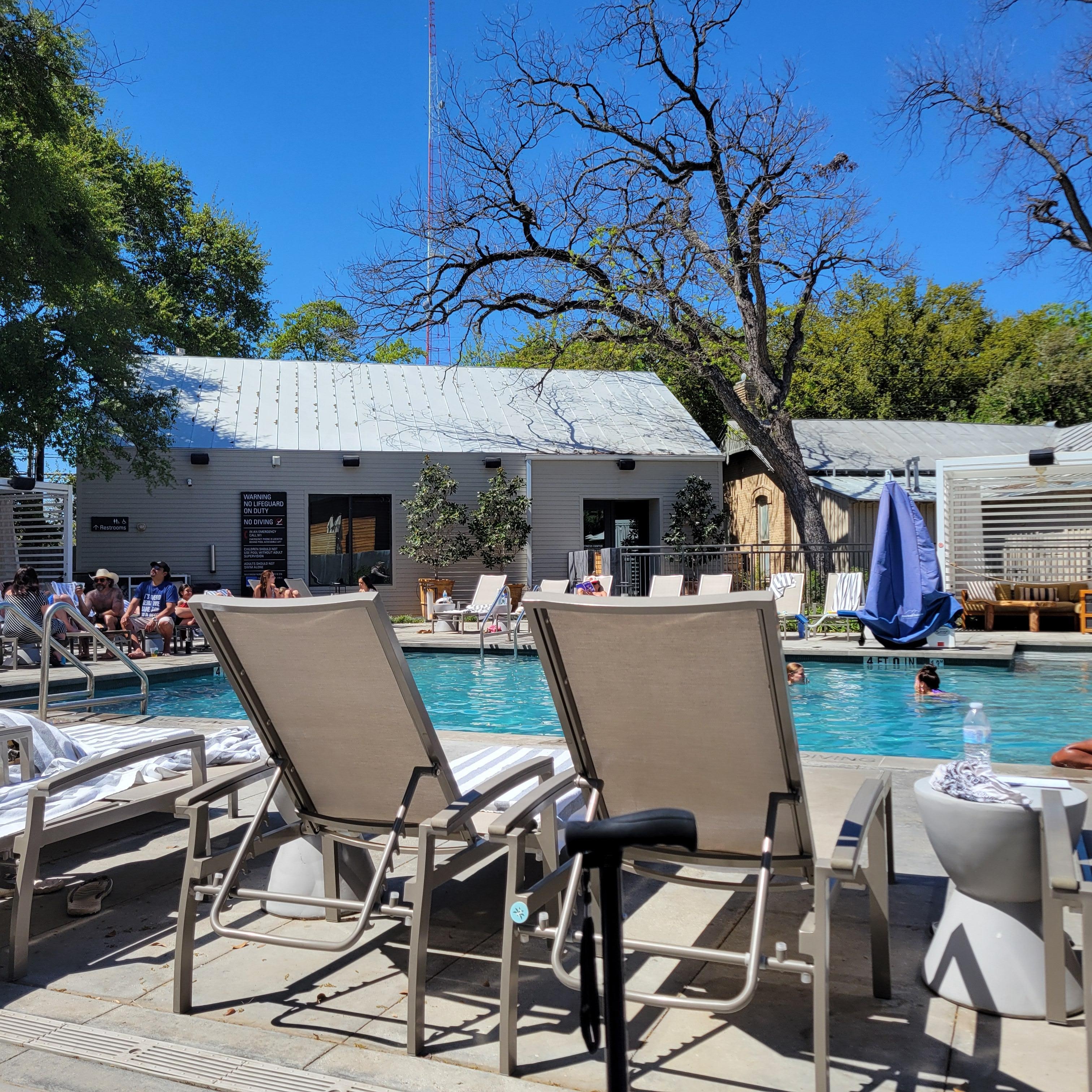A+++ staff. Great pool area. Oasis in the city. Accessible room. Only con - No grab bars in shower or lav. Overall very pleased.