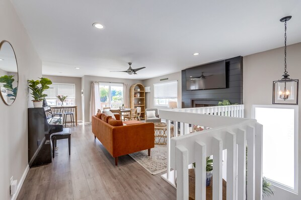 Welcome to the Spanish village by the Sea! Come and unwind to the relaxed rhythms of San Clemente. Just take a 10 minute walk to the beach, pier or beach trail, or a 5 minute stroll to San Clemente's downtown Del Mar street where you'll find some of OC's best restaurants, bars, and boutique shopping - you won't want to leave! Spread out in this 4-bedroom home away from home complete with TVs in almost every room, a fully stocked kitchen, and peek-a-book ocean views from the balconies.