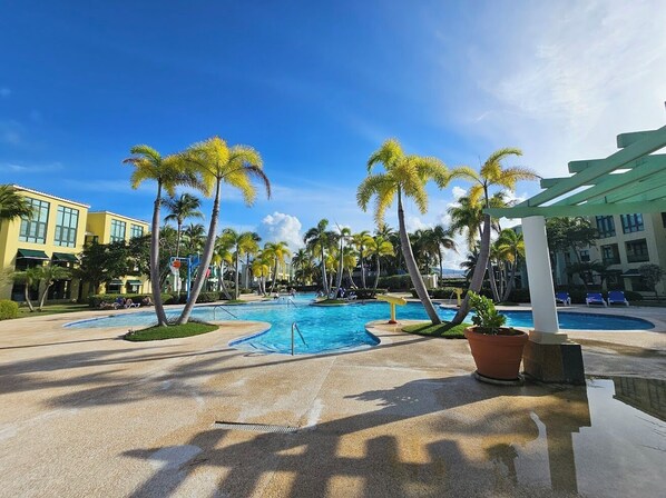 This condo is in a great location within the complex, and it is well equipped with kitchen supplies and bonuses such as beach chairs, beach towels, beach toys, and sporting equipment for use in the complex. The property manager was quick to communicate, and made the check in/check out process easy. I would definitely recommend this property for nice amenities and convenient location to several attractions on the north east side of Puerto Rico such as El Yunque, bioluminescent bay in Fajardo, and Old San Juan.