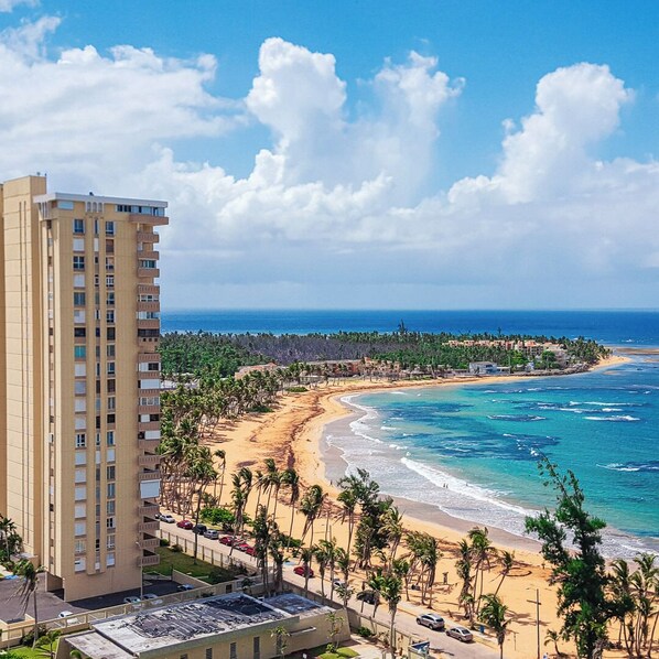 This rating should be a 5 star judging for the attentiveness of your staff and the apartment conditions, however the surrounding disrepair due to hurricane Maria not yet corrected gives it a 4. From the apartment your view includes the beach, El Yunque mountain range, and the main roadway entrance. We took nice pictures from the balcony to share them with friends and family. The pool non-operational was a non issue to us, after all the beach is just out the gate. The surrounding areas within the complex still show hurricane damage, however the surroundings are well manicured, grass cut etc. The apartment is very well kept, everything works and even have beach chairs, volleyball ball, beach toys for the kids, towels etc..., the kitchen well stocked just get what you need from the supermarket across the street. The welcome binder has excellent tips for entertainment and dinning suggestions. The instructions were clear, and to the point. Security personnel where very attentive, alert, respectful, helpful, specially Jose Colon, whom assisted us during our late arrival Friday night. We can say we stayed at our home away from home. Thanks Judith and Violetta for your assistance, we will call again.