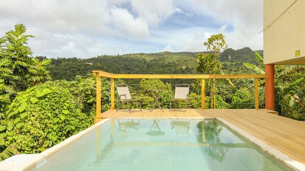 Welcome to Toro Views—a sustainable haven in the heart of the rainforest. Enjoy panoramic views stretching from El Toro Trail to the San Juan skyline and the El Yunque expanse. Challenge friends on the ping pong table, relax in the hammock, eating from one of the many fruit trees, or take a swim while enjoying breathtaking views of both the rainforest by day or San Juan by night.