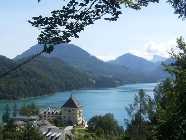 Die Ferienwohnung ist zum Süden hin ausgerichtet, und den ganzen Tag sonnig. Des Weiteren hat man einen herrlichen Blick auf den Schafberg, die Drachenwand und den Schober. Der Balkon ist sowohl vom Schlafzimmer, als auch vom Wohnzimmer begehbar. Unser Haus ist 3 km vom Ortszentrum Mondsee entfernt, und 1 km von Einkaufsmöglichkeiten und dem öffentlichen Badestrand.
