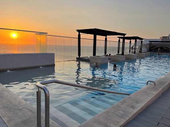 In front of the beach and mountains on the side, all day long taking breeze from the ocean in an apartment with state-of-the-art details in the decorations and accommodations including Jacuzzi on your balcony. Private entry to the condominium makes this place your destination for total relaxation. Swimming pools, jacuzzies, BBQ and bar on the on the rooftop. Several swimming pools on common areas. Restaurants and Bars on the building with room service and many other entertainments. Security 24x7