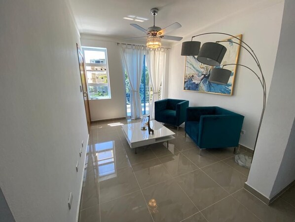 "Classy Decorated Apartment in one of the best neighborhoods in Santiago, just 15 minutes away from Monumento, with multiple Restaurants. AC in 3 rooms the livingroom come with a powerful ceiling fan. The apartment is exquisitely decorated. The apartment is spacious with its own washing and dryer, living and dinning room. There are 3 bedrooms and There is 31/2 bathrooms, 1 bathroom in the master bedroom, one in the second bedroom and a full bathroom on the common area and half by the kitchen