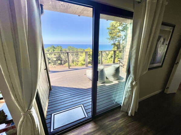 This property feels like a cabin in the redwoods with a view of the ocean. You can sit out on the deck, listen to the ocean waves, watch the deer and wild turkeys while sipping your coffee. We love to cook so we appreciated the full kitchen. The property is very private and quiet. We used the deck for our elopement and it was the perfect setting for the four of us.