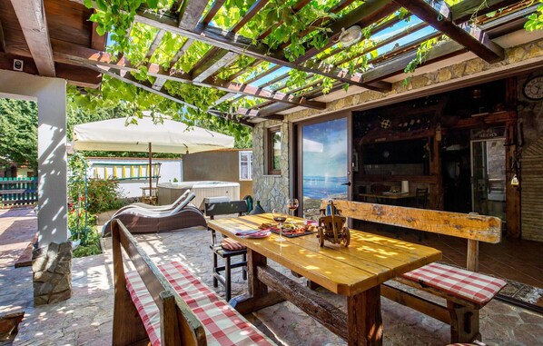 Charmantes Ferienhaus mit Whirlpool und schöner Gartengestaltung.