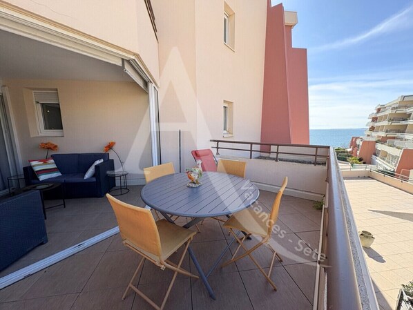 Croisette Residence, welcome to this charming apartment located just 100 metres from the fine sandy beach of Lazaret. Enjoy a lovely stay in Sète in the heart of the Corniche district with its shops, restaurants, bakery and traditional market. This 34 m² air-conditioned T2 apartment offers a glazed loggia and a 12 m² furnished terrace. On the 2nd floor with a lift, the residence has a shared swimming pool open in high season. On the night side, 1 bedroom with a (140 cm) bed and a (140 cm) sofa bed. The shower room has a nice shower. Separate toilet. Washing machine and television. The equipped kitchen has 4 ceramic hobs, a small fridge, a dishwasher, an oven, a microwave, a NESCAFE coffee maker and a toaster. Collective open-air parking. No designated parking space. Direct access to the beach. West facing. Non-smoking accommodation. Pets not accepted. Sheets and towels not included. Rental possible, contact us.