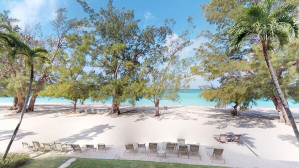 Condo # 07 is located on the second floor with wonderful views of the crystal-clear turquoise Caribbean Sea and powdery white sandy beach.
