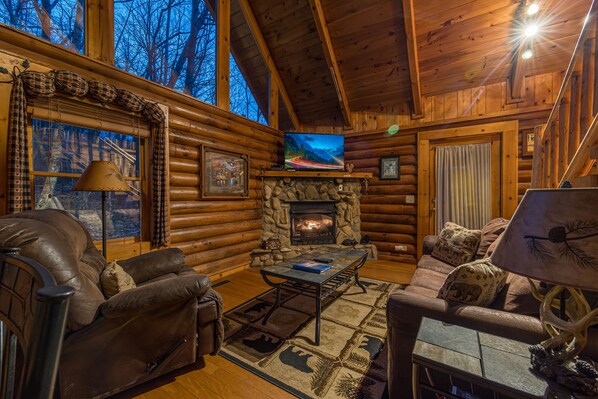 Welcome to the enchanting hideaway of A Lover's Secret, nestled amidst towering trees in the serene Sky Harbor Resort. Get ready to embark on a luxurious romantic getaway that will leave your heart yearning to share this extraordinary secret with the world! Enter the Great Room, a sanctuary adorned with a captivating stone gas fireplace, a 42" Hd Lcd Tv, and a Dvd player. Sink into the embrace of a plush recliner or unwind on the queen sleeper sofa, perfect for accommodating the little ones. Sunlight streams through the high windows, offering delightful views of the surrounding woods. The back deck just off the main room offers a steamy hot tub, ready to soothe and rejuvenate you. Indulge in the master suite, where every day feels like Valentine's Day. A pampering jetted tub awaits next to a comforting stone gas fireplace. Bask in the cozy glow, which casts its warmth upon both the jacuzzi and the king-sized bed. A 32" Lcd Tv adorns the wall at the foot of the bed, completing the ambience of romance and relaxation. Ascend the stairs to the loft, a haven for entertainment and relaxation. Engage in lively games of pool or unwind on the futon. If you crave a breath of fresh air or a moment to gaze at the stars, venture onto the small third-level deck. On the main floor, discover a fully equipped kitchen where culinary dreams come to life. Whether you prefer grilling with charcoal or gas, both options are at your disposal. The inviting porch swings provide an ideal spot to relax, cradling your morning cup of coffee before embarking on adventures in nearby Gatlinburg or Pigeon Forge. Embrace the alluring beauty of the Smokies and seize the opportunity to share A Lover's Secret with that special someone in your life. Let your love blossom in this idyllic retreat, where cherished memories await. Book your stay today and unlock the enchantment of this remarkable getaway!