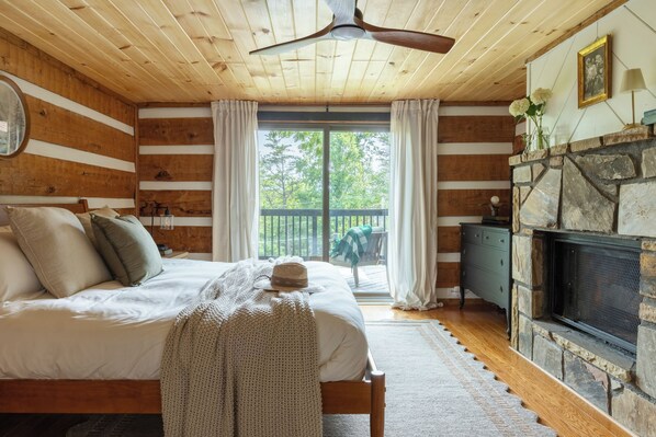 Our luxury designed cabin includes 3 bedrooms and 2 full bathrooms, a private covered deck, hot tub, and propane fireplace. Wake up to the sun rising through the trees and seasonal mountain views.