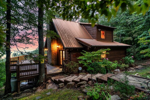 Nestled atop Bluff Mountain, the cabin is accessible via a one-way road that winds its way up more than halfway. Please be aware that during rainy or winter weather conditions, the steep grade can pose a challenge. For a seamless and enjoyable experience, we strongly advise using a 4-wheel drive vehicle to access the cabin. Please note that 2-wheel drive cars might face difficulties reaching the cabin, especially in rainy or snowy weather.