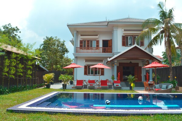 Dank der ausgezeichneten Lage im Herzen von Siem Reap ist diese Villa zu Fuß nur 15 Minuten entfernt von: Bereich um den Alten Markt und Pub Street. Ebenfalls höchstens 10 Minuten entfernt: Psa Krom Markt und SATCHA Handwerkszentrum.