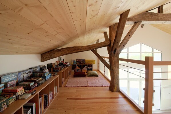 Located in the heart of the countryside in South Gironde, in the heart of a green setting in a Natura 2000 listed site, the Sansoutic gîte welcomes you for your stay in this calm and preserved environment. Heritage lovers, beautiful discoveries await you in Bazas as well as at the castles of Roquetaillade, Cazeneuve and Villandraut. Outdoor sports enthusiasts can choose between hiking, treetop adventure courses, canoeing, kayaking, fishing and cycling. On site, you can discover our vegetable garden and orchard managed in agroecology. You will also meet the two cats of the house. Experience plancha evenings with a starry sky and the Milky Way. To relax, ping-pong, Molky, table football and nearly 150 board games, a gym located next to the gîte are at your disposal; what challenges will you take on? Housed in a 200-year-old farmhouse, the Sansoutic gîte, fully renovated in 2021, adjoins our main house with a separate entrance. It consists of a living room with a fully equipped kitchen, dining room, and table football on the ground floor. Upstairs on the mezzanine, the TV lounge awaits you for pleasant moments of relaxation with a library of more than 150 comics and manga for all ages. The upper floor also includes two small attic bedrooms equipped respectively with a 140x190 bed and a 160x200 bed (one of them has an extra sofa bed), a bathroom, and a separate toilet. For a peaceful stay, sheets, towels, kitchen linen, and pellet central heating are included in the price. Mosquito traps have been installed just in case. End-of-stay cleaning available (paid service). Accommodation reserved for tourist rental. Gîte located 18 km from Bazas and the Vezelay route