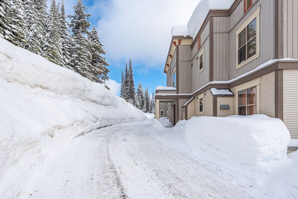 Dieses Gerät bietet das Beste aus beiden Welten - einen begehbaren Zugang an der Eingangstür mit einem Balkon auf der 2. Etage mit Blick auf die U-Bahn-Stadt und den Silver Queen-Skilift. Dies ist eine der wenigen Einheiten im gesamten Creekside-Komplex, die über diese Funktion verfügt - fahren Sie direkt vor die Tür, um Lebensmittel oder Gäste zu entladen. Fahren Sie direkt von und zu Ihrer Tür. Stressfrei ohne lästige Treppen oder Aufzüge. Genießen Sie die beste Lage mit Langlaufloipen, Abfahrten, Schneeschuhwanderwegen und Hundewanderwegen direkt vor der Haustür. Kinder spielen sicher direkt vor der Tür. Nur 5 Minuten zu Fuß zum Dorf oder Adventure Park.