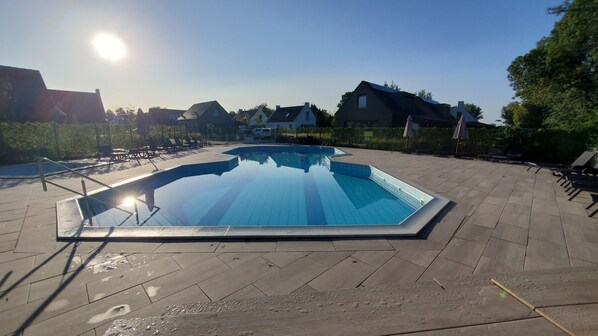 Willkommen im Ferienhaus Villachiller! Hier kann sowohl auf der großen, überdachten, möblierten Terrasse (sogenannter Sommergarten), wie auch auf der bequemen Waldliege in Blickrichtung einer großen Weide entspannt werden. Das Haus wurde erst in 2022 vollständig renoviert/saniert und neu möbliert. Die Ausstattung ist hochwertig und lässt keine Wünsche offen. Das Haus befindet sich auf einem großen Grundstück des sehr grünen und gut gelegenen Ferienhausparks De Wielen. Der nächste Strand – ein sehr schöner Sandstrand mit tollem Strandcafé – liegt ca. 5,5 Kilometer vom Ferienhaus entfernt und ist mit den zur Ausstattung gehörenden Fahrrädern (darunter zwei E-Bikes) sehr gut zu erreichen. Der Ferienpark verfügt über einen beheizten Außenpool sowie diverse Spielmöglichkeiten für Kinder. Das Haus teilt sich wie folgt auf: Im Erdgeschoss befinden sich das in 2022 neu errichtete Badezimmer, das Wohn- Esszimmer sowie die zum Ess- und Wohnbereich offene Küche. Vom Wohnzimmer aus gelangt man auf die möblierte Terrasse, die mit Glas überdacht ist und zu einem sog. Sommergarten umfunktioniert werden kann. Hier laden sechs bequeme Loungesessel sowie eine Doppelliege zum Relaxen ein. In den Herbst- und Wintermonaten ist man hier vollkommen windgeschützt. Es befinden sich zahlreiche dicke Decken in der wetterfesten Gartenbox, sodass man sich auch bei Regen oder starkem Wind bequem und geschützt im Außenbereich aufhalten kann. Im Obergeschoss befinden sich drei Schlafräume. Das rechte Schlafzimmer verfügt über ein Doppelbett – 160x200cm groß – sowie einen geräumigen Kleiderschrank. Die beiden anderen Zimmer verfügen über zwei einzelne 90x200cm Betten bzw. ein 140x200cm Bett. Ferner befindet sich auf dieser Etage ein in 2022 errichtetes WC mit Waschtisch.
