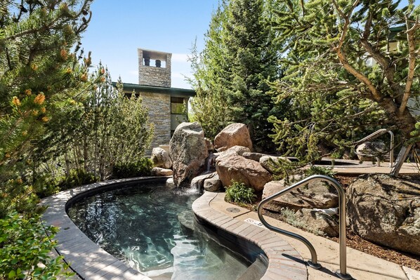 Steps from seasonal outdoor pool and hot tub complex