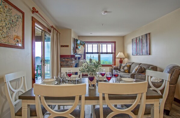 The view from the spacious deck is spectacular! Well appointed and the beds were so comfortable we had to Take pictures of the tag on it so we could get them for home! Location, location, location-right next to village and pools! Underground parking! We will be back!