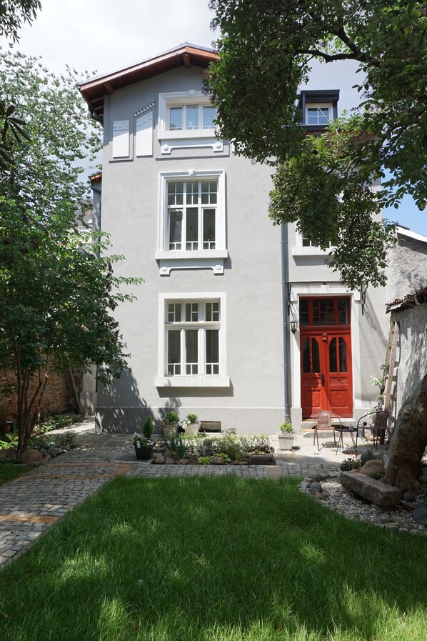 Ground floor of a restored house in the centre of Sofia. Very quiet and green. Short walk from main shopping area and all sights. Main bedroom with double bed. Second room with two singles. Spacious entrance hallway. New kitchen with fridge, freezer and washing machine. Bathroom with shower. Fast wireless internet.