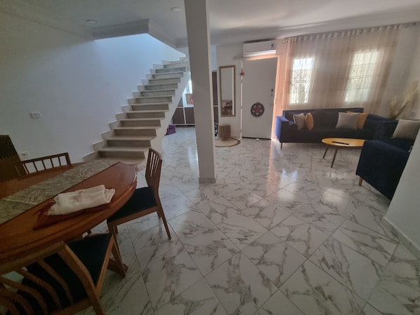 Welcome to our comfortable 2-bedroom house, located right across from the Technopole and only 10 minutes away from the beach. This house provides the perfect setting for a pleasant and relaxing stay.