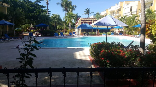 This 1-bedroom, 1-bathroom apartment is located in the center of Sosua with 750 sqft. The residence has a pool, it is walking distance to the beach and steps from all amenities