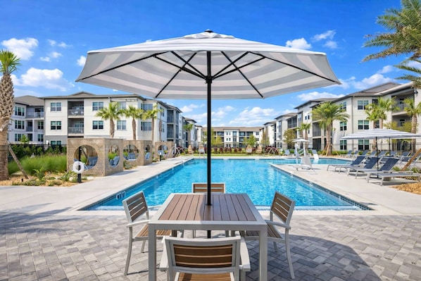 Hat Cozy Lux King Bed Apartment with Pool Gym Pickle Ball EV Charger and more einen Pool?