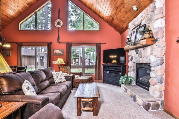 Das Pinehaven ist ein neues, klimatisiertes Cottage mit 3 Schlafzimmern mit 1 Kingsize-Bett, 1 Queensize-Bett und 2 Twin-Size-Betten, 2 & 1/2 Bädern, Geschirrspüler, Mikrowelle, Gaskamin, Kabel-TV und Seeblick. 6 Bewohner.
