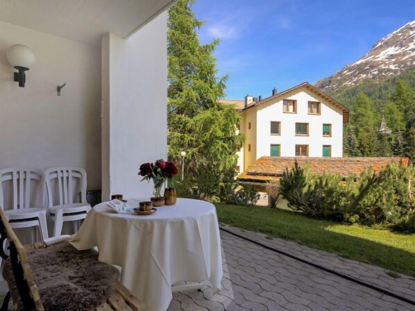 "Chesa Maurus A1", 2-Zimmer-Wohnung 63 m2, im Erdgeschoss. Komfortabel und gemütlich eingerichtet: Wohn-/Esszimmer mit 1 Doppeldiwanbett (1 x 140 cm, Länge 200 cm), offenem Kamin, Sat-TV und Stereoanlage. Ausgang zum Gartensitzplatz, Richtung Süden. 1 Zimmer mit 1 Doppelbett (2 x 90 cm, Länge 200 cm). Küche (Backofen, Geschirrspüler, Toaster, Wasserkocher, elektrische Kaffeemaschine, Kapseln für die Kaffeemaschine (Nespresso) extra, Fondue Set (Käse)). Bad/WC. Gartensitzplatz. Terrassenmöbel. Sicht auf die Berge. Zur Verfügung: Bügeleisen, Haartrockner. Internet (Wireless LAN, gratis). Garage Nr. 22, Höhe 188 cm, Breite 200 cm. Bitte beachten: Nichtraucher-Unterkunft. Maximal 1 Haustier/Hund erlaubt.