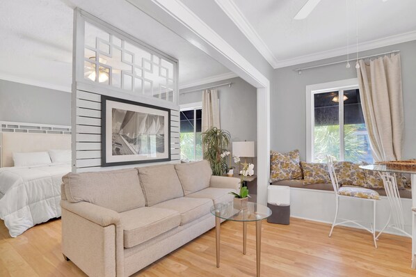 Nestled in the vibrant city of St. Petersburg, Florida, lies a gem of urban living: a spacious, upscale studio apartment on the second story. This haven boasts all the amenities one could desire for a comfortable stay in the heart of downtown.