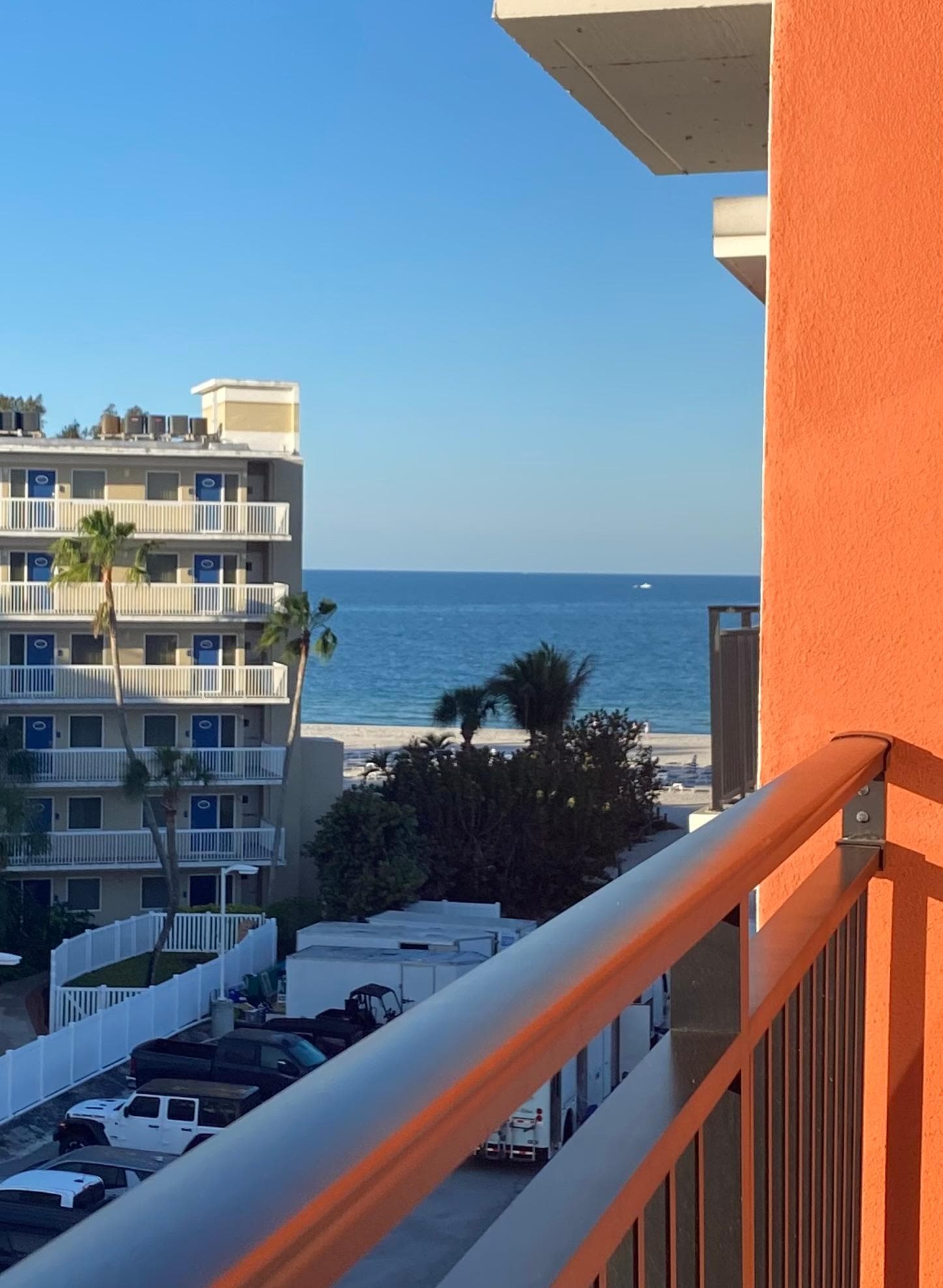 Perfect location. Directly on the beach. Plenty of food and drink options. Also, the sun sets directly behind the hotel! Will be staying here again!
