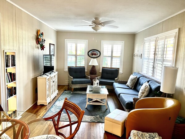 Welcome to the cleanest cottage on the beach! Our reviews speak for themselves. Nestled in the heart of Treasure Island, our charming Key West-style 2-bedroom, 1-bath cottage at Gulf Sounds is the true 'TREASURE' of beach getaways. Just a quick, safe 30-yard stroll takes you to the pristine sands of Treasure Island Beach and its scenic boardwalk. Located within a small, intimate resort, our bungalow offers unmatched privacy while still placing you steps away from the vibrant activities of Treasure Island and nearby Madeira Beach. Enjoy the convenience of being within walking distance to the famous John's Pass, where you can indulge in fresh seafood, shop unique boutiques, savor ice cream treats, or relax at waterfront bars. For even more adventure, hop on the Suncoast Beach Trolley right at our corner, giving you easy access to all the beaches, including Clearwater, for a single fare.
