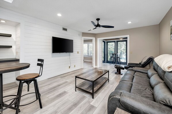 Come make some memories! Newly renovated from top to bottom! 2-bedroom, 2 bath condo with a new enclosed sunroom off the living room. This wonderful condo is open and bright and offers a beautiful modern kitchen with all new counter tops, and new stainless-steel appliances. There is plenty of room for all 6 guests at the high-top dining table.