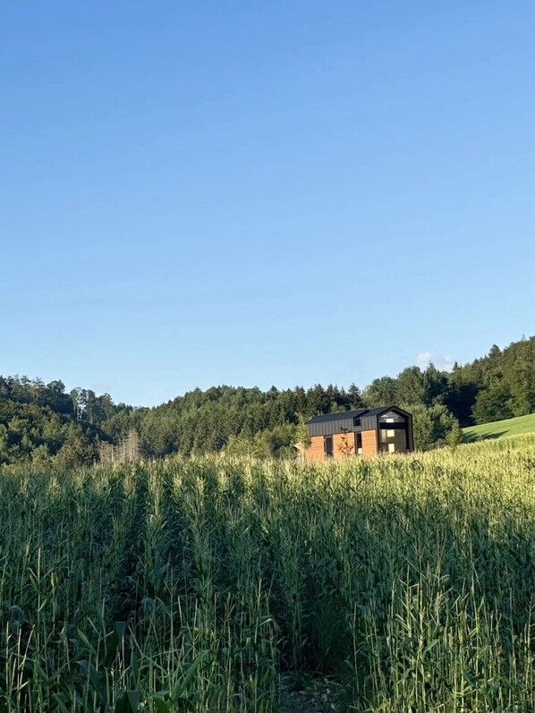 Das Tiny Home "Zuhause im Freien" mit Blick auf das Tal befindet sich in Stockach und ist perfekt für einen unvergesslichen Urlaub mit Ihren Liebsten. Die Unterkunft auf 2 Etagen besteht aus einem Wohnzimmer mit Schlafcouch für 1 Person oder 2 Kinder, einer Küche, 1 Schlafzimmer und 1 Badezimmer und bietet somit Platz für 3 Personen. Zur Ausstattung gehört außerdem eine Klimaanlage. Um dem Alltag zu entfliehen, haben wir im TinyHouse auf WLAN verzichtet. Allerdings gibt es Handyempfang. Genießen Sie den Komfort einer Feuerschale mit Rost für die Zubereitung k östlicher Mahlzeiten oder eines gemütlichen Lagerfeuers während Ihres Aufenthalts.