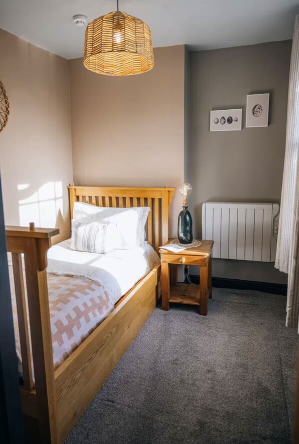 The main bedroom has a king-size bed with a super-comfy mattress, soft bedding, and a full wardrobe. The second bedroom includes a single bed with a pull-out second single, ideal for one adult, two kids, or two friends who don’t mind a cosy setup. Please let us know if you’d like the extra bed made up before you arrive.