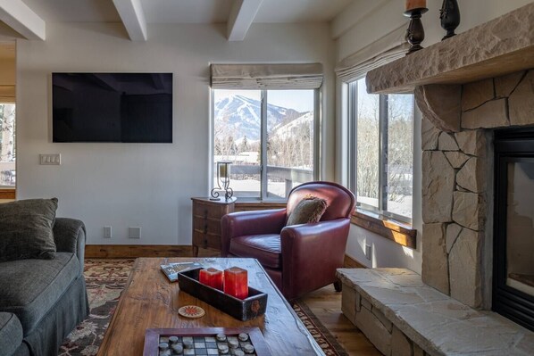 Voll ausgestattete Küche, Wohnbereich und Waschtrockner. Die Wohnung liegt direkt am 18-Loch-Golfplatz von Trail Creek in Sun Valley. Nur ein kurzer Spaziergang zum Sun Valley Village und neben dem Dollar Mountain.