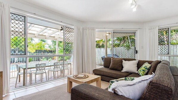 Dieses geschmackvoll eingerichtete Haus mit 4 Schlafzimmern und 2 Bädern liegt nur einen kurzen Spaziergang vom schönen Noosa River, Restaurants und Geschäften entfernt. Die nach Nordosten ausgerichteten Wohnbereiche bieten Zugang zur überdachten Terrasse mit Grill und Blick auf den Pool. Die Besitzer haben sorgfältig Fahrräder / Helme, Angelruten, Bodyboards und Tischtennis für Ihren zusätzlichen Genuss geliefert.