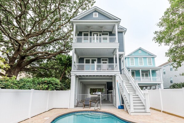 Sand Tiger offers breathtaking views, a spacious open floor plan, and the convenience of a private elevator to all floors, making it the perfect home for your family. Begin your day on one of the four covered balconies, sipping your coffee while watching the sunrise. In the afternoon, relax with a snack as you enjoy the sight of your loved ones splashing in the private pool, all while listening to the soothing sound of the waves. With the beach just a minute's walk away, Sand Tiger is ready to be your new home-away-from-home!