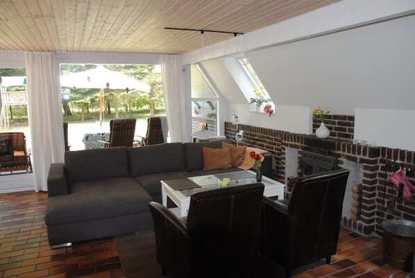 Es gibt auch eine Wärmepumpe im Haus. Das Wohnzimmer verfügt über einen Holzofen, der auch als Kamin genutzt werden kann. Esszimmer großer Esstisch mit 6 Stühlen und Hochstuhl, modern eingerichtet mit Sat-TV - Radio - CD-Player - DVD - und Safe. Der elektrische Sicherungskasten ist mit automatischen Sicherungen ausgestattet. Vom Wohnzimmer aus haben Sie Zugang zu einer teilweise überdachten Terrasse mit Gartenmöbeln und Sonnenschirm.